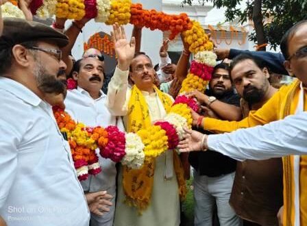 लखनऊ 8 सितंबर। उत्तर प्रदेश आदर्श व्यापार मंडल के तत्वाधान में राजधानी के व्यापारियों ने प्रदेश के पूर्व उपमुख्यमंत्री डॉ दिनेश शर्मा को राज्यसभा का निर्विरोध राज्यसभा सदस्य चुने जाने पर आदर्श व्यापार मंडल के प्रदेश अध्यक्ष संजय गुप्ता के नेतृत्व में उनके आवास पहुच कर उन्हे बधाई एवं शुभकामनाएं दी तथा फूल माला से स्वागत किया।