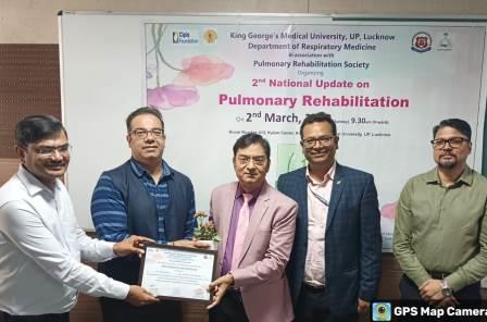 किंग जॉर्ज चिकित्सा विश्वविद्यालय, उ0प्र0, लखनऊ के कलाम सेंटर में सोमवार को पल्मोनरी रिहैबिलिटेशन का द्वितीय नेशनल अपडेट संगोष्ठी सम्पन्न हुई। संगोष्ठी में रेस्पिरेटरी मेडिसिन विभाग के विभागाध्यक्ष डा0 सूर्यकान्त ने बताया कि देश में लगभग 10 करोड़ लोग सांस की बीमारियों से ग्रस्त हैं। इन सांस के रोगियों के उपचार के साथ साथ पल्मोनरी रिहैबिलिटेशन का महत्वपूर्ण योगदान है। प्रमुख श्वसन संबंधी बीमारियां जैसे अस्थमा, सीओपीडी, आईएलडी, ब्रोंकिइक्टेसिस आदि शामिल हैं, जिनमें पल्मोनरी रिहैबिलिटेशन की विशेष भूमिका होती है। डा0 सूर्यकान्त ने बाताया कि फेफड़े की टीबी के रोगी जिनके इलाज के बाद भी सांस फूलती रहती है ऐसे रोगियों के इलाज में भी पल्मोनरी रिहैबिलिटेशन प्रमुख भूमिका निभाता है। डा0 सूर्यकान्त ने बताया कि श्वसन के गंभीर एवं पुराने रोगियों के लिए पल्मोनरी रिहैबिलिटेशन एक वरदान है। जब कोई रोगी हमारे पास आता है, तो हमारा पहला उद्देश्य उसका उपचार करना होता है, दूसरा उसके लक्षणों पर नियंत्रण स्थापित करना, तीसरा उसे राहत प्रदान करना, और चैथा उसकी बीमारी की तीव्रता को कम करना। यदि इसे रोकने में असमर्थता होती है, तो वहीं से पल्मोनरी रिहैबिलिटेशन की भूमिका शुरू होती है।