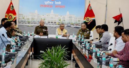 लखनऊ। महानिदेशक, रेलवे सुरक्षा बल, रेलवे बोर्ड, नई दिल्ली मनोज यादव (भारतीय पुलिस सेवा) ने पूर्वोत्तर रेलवे लखनऊ मण्डल के मण्डल रेल प्रबन्धक कार्यालय के सभागार में पूर्वोत्तर रेलवे के महानिरीक्षक सह प्रधान मुख्य सुरक्षा आयुक्तध्रेलवे सुरक्षा बल तारिक अहमद, जगजीवन राम आरपीएफ एकेडमी के उपमहानिरीक्षक सह निदेशक वेकेटश्वर राव, उत्तर रेलवे के प्रधान मुख्य सुरक्षा आयुक्त पंकज गंगवार एवं मण्डल रेल प्रबन्धक गौरव अग्रवाल, अपर मंडल रेल प्रबंधकध्परिचालन विक्रम कुमार, अपर मंडल रेल प्रबंधक/ इंफ्रा भुवनेश सिंह की उपस्थिति में पूर्वोत्तर रेलवे एवं उत्तर रेलवे लखनऊ मण्डलों के रेलवे सुरक्षा बल के वरिष्ठ अधिकारियों के साथ समीक्षा बैठक की तथा रेलवे सुरक्षा बल सदस्यों के साथ ’सुरक्षा सम्मेलन’ की अध्यक्षता करते हुए यात्री एवं रेल सम्पत्ति से संबंधित अपराधों एवं उनकी रोकथाम तथा यात्रियों की सुरक्षा एवं रेल संरक्षा के सम्बन्ध में विस्तृत चर्चा की।