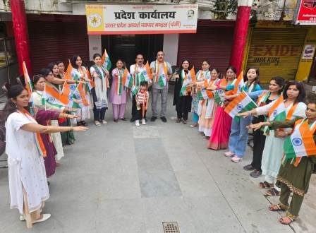 – उत्तर प्रदेश आदर्श व्यापार मंडल महिला इकाई लखनऊ ने तिरंगा धारण किया