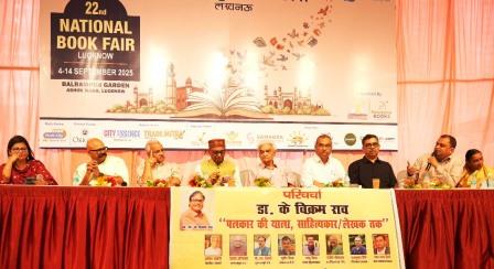 लखनऊ। हिंदी दिवस के अवसर पर राजधानी लखनऊ में चल रहे 22वें राष्ट्रीय पुस्तक मेले में रविवार को वरिष्ठ पत्रकार स्व. डॉ. के. विक्रम राव की स्मृति में “पत्रकार की यात्रा, साहित्यकार/लेखक तक” विषय पर विशेष परिचर्चा का आयोजन हुआ। कार्यक्रम में देश के जाने-माने अभिनेता व रंगकर्मी अनिल रस्तोगी, उत्तर प्रदेश के सूचना आयुक्त दिलीप अग्निहोत्री और पी.एन. द्विवेदी, वरिष्ठ पत्रकार राजीव श्रीवास्तव, राजकुमार सिंह, नवल कान्त सिन्हा और संपादक सुधीर मिश्रा सहित अनेक पत्रकार व साहित्यकार मौजूद रहे।