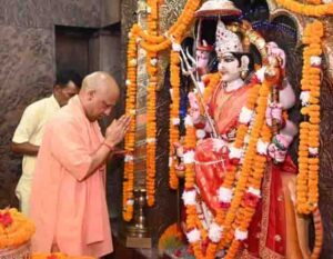 सुबह मुख्यमंत्री योगी ने तुलसीपुर स्थित देवी शक्तिपीठ मां पाटेश्वरी मंदिर में दर्शन और पूजन-अर्चन किए तथा मां की आरती में सम्मिलित होकर प्रदेश की सुख-समृद्धि और स्वस्थ्य वातावरण की कामना की। इसके बाद उन्होंने मंदिर परिसर में गोशाला का दौरा किया और गायों को गुड़ और चारा खिलाया। इस दौरान मंदिर में मौजूद श्रद्धालुओं, विशेषकर बच्चों से बातचीत करते हुए उन्हें चॉकलेट भी दी और पढ़ाई में मन लगाने की सीख दी। मंदिर के महंत मिथिलेश नाथ योगी और कालीबाड़ी मंदिर गोरखपुर के महंत रवींद्र दास भी इस अवसर पर मौजूद रहे।