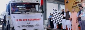 लखनऊ। रक्षा मंत्री राजनाथ सिंह और उत्तर प्रदेश के मुख्यमंत्री योगी आदित्यनाथ ने आज डिफेन्स इंडस्ट्रियल कॉरिडोर के लखनऊ नोड में निर्मित स्वदेशी ब्रह्मोस क्रूज मिसाइल के पहले बैच का फ्लैग ऑफ किया। इस अवसर पर दोनों नेताओं ने मिसाइल निर्माण स्थल का निरीक्षण किया और परिसर में रुद्राक्ष का पौधरोपण भी किया।