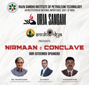 जायस (अमेठी। निर्माण कान्क्लैव-2025 का आयोजन राजीव गांधी पेट्रोलियम प्रौद्योगिकी संस्थान, जयस (अमेठी) में सौहार्द्य-2025 सामाजिक उत्सव के अंतर्गत हुआ। सात दिवसीय ऊर्जा संगम महोत्सव का यह प्रमुख कार्यक्रम सामाजिक नवाचार, युवा नेतृत्व और सामुदायिक सहभागिता पर केंद्रित रहा। शुरुआत में फैकल्टी कोऑर्डिनेटर डॉ. अरविन्द सिंह ने अतिथियों का स्वागत किया। छात्र संयोजक हर्षित पांडे और कौशल कुमार शर्मा ने कार्यक्रम की रूपरेखा प्रस्तुत की।