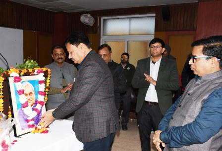 कार्यक्रम की शुरुआत प्र. अपर निदेशक सुबोध दीक्षित द्वारा अटल बिहारी वाजपेई के चित्र पर माल्यार्पण से हुई। इसके बाद अधिकारियों एवं कर्मचारियों ने क्रमबद्ध रूप से पुष्प अर्पित कर उन्हें नमन किया। इस अवसर पर सुशासन के अंतर्गत निहित मूल्यों और सिद्धांतों को व्यवहार में उतारने के लिए सभी को शपथ भी दिलाई गई। वैचारिक संगोष्ठी के दौरान अधिकारियों एवं प्रमुख कर्मचारियों ने सुशासन दिवस के महत्व पर अपने विचार रखे। सुबोध दीक्षित ने कहा कि सुशासन की अवधारणा ऐसी व्यवस्था से जुड़ी है, जिसमें सरकार और संस्थाएं जनता के प्रति पारदर्शी, जवाबदेह, कुशल और प्रभावी हों। उन्होंने कहा कि लोकतांत्रिक मूल्यों, मानवाधिकारों और नैतिकता के आधार पर कार्य करते हुए संसाधनों का समुचित प्रबंधन और जनकल्याण सुनिश्चित करना ही सुशासन का लक्ष्य है। उन्होंने बताया कि सुशासन के प्रमुख सिद्धांतों में पारदर्शिता, जवाबदेही, जनसहभागिता, कानून का शासन, कुशलता, समानता और समावेशिता शामिल हैं, जिनमें जनसहभागिता, पारदर्शिता और जवाबदेही सबसे महत्वपूर्ण घटक हैं। कार्यक्रम का संचालन सहायक निदेशक राजीव कुमार दूबे ने किया। आयोजन को सफल बनाने में संस्थान के अधिकारियों, संकाय सदस्यों एवं कर्मचारियों का सराहनीय योगदान रहा।