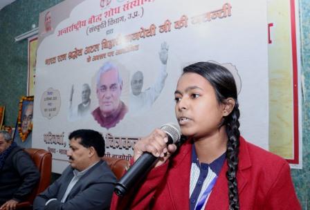 लखनऊ । अंतर्राष्ट्रीय बौद्ध शोध संस्थान, लखनऊ तथा संस्कृति विभाग, उत्तर प्रदेश द्वारा भारत रत्न श्रद्धेय अटल बिहारी वाजपेयी जयंती के अवसर पर 25 दिसम्बर 2025 को “भारत रत्न श्रद्धेय अटल बिहारी वाजपेयी: राष्ट्र निर्माण में योगदान” विषय पर निबंध, चित्रकला, भाषण प्रतियोगिता एवं परिचर्चा का आयोजन जय प्रकाश नारायण सर्वोदय बालिका विद्यालय, मोहान रोड, लखनऊ में किया गया। कार्यक्रम का उद्देश्य महान राष्ट्रनिर्माता अटल जी के विचारों, मूल्यों और योगदान से छात्राओं को प्रेरित करना था।