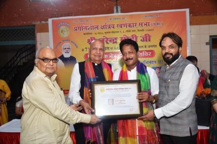 नई दिल्ली 26 सितंबर। प्रधानमंत्री नरेंद्र मोदी के 71वें जन्मदिवस के अवसर पर सेवा एवं समर्पण अभियान के अंतर्गत आज 26 सितंबर को प्रगतिशील क्षत्रिय स्वर्णकार सभा द्वारा निशुल्क नेत्र परीक्षण शिविर का आयोजन किया गया। आयोजन शिविर का उद्घाटन पूर्वी दिल्ली के मेयर श्याम सुंदर अग्रवाल ने किया।
