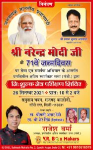 ज्ञात हो कि रविवार 26 सितंबर 2021 को समुदाय भवन, गांधीनगर दिल्ली में प्रगतिशील छत्रिय स्वर्णकार सभा द्वारा एक निशुल्क नेत्र परीक्षण शिविर का आयोजन किया गया। सभा के अध्यक्ष राजेश वर्मा ने बताया कि संगठन द्वारा यह नेत्र परीक्षण शिविर विगत 6 वर्षों से कराया जा रहा है। यह उनकी माता स्व० अनार देवी व पिता स्व० शेर सिंह (डिब्बे वाले) की पावन स्मृति पर आयोजित किया जाता है।