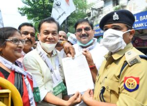 लखनऊ 7 अक्टूबर। केन्द्रीय मंत्री अजय मिश्रा की बर्खास्तगी व उनके पुत्र की गिरफ्तारी की मांग को लेकर आज आरएलडी के राष्ट्रीय संयोजक अनुपम मिश्रा के नेतृत्व में एक शिष्टमंडल महामहिम राष्ट्रपति को संबोधित ज्ञापन उत्तर प्रदेश की राज्यपाल के माध्यम से देना चाहता था, जिसे प्रदेश कार्यालय के द्वार पर ही पुलिस प्रशासन ने घेराबंदी कर रोकने का प्रयास किया, जिससे पार्टी समर्थकों में रोष व्याप्त हो गया और वह राज्यपाल को ज्ञापन देने की मांग पर अड़ गये।